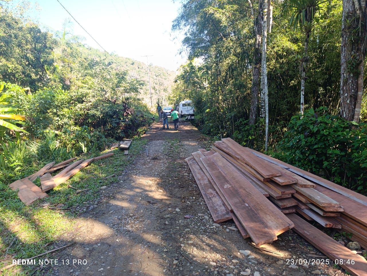 Além disso, a equipe também atuou na Ponte Pitinga, realizando a manutenção da estrutura com a substituição de pranchas de madeira danificadas, assegurando maior durabilidade e segurança no acesso.