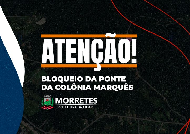 Estrada da Colônia Marques terá bloqueio temporário para reforma de ponte nesta terça-feira (03)A Prefeitura de Morretes informa à população que a Estrada da Colônia Marques passará por um bloqueio temporário nesta terça-feira, dia 03 de fevereiro, em razão das obras de reforma da ponte da Colônia Marques.