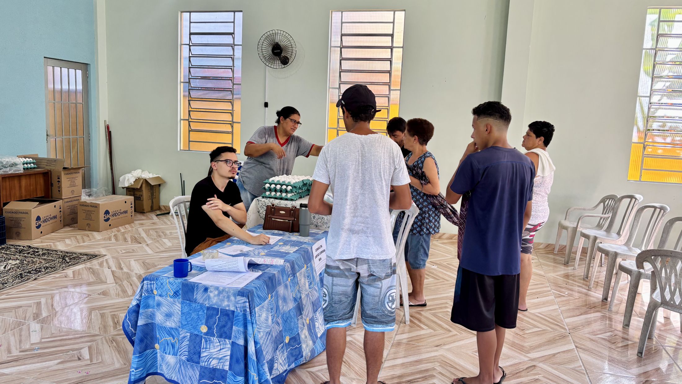 Para a retirada, foi necessária a apresentação de RG e CPF, além da orientação para que cada beneficiário levasse seus próprios recipientes ou sacolas, garantindo melhor organização e conservação dos alimentos distribuídos.